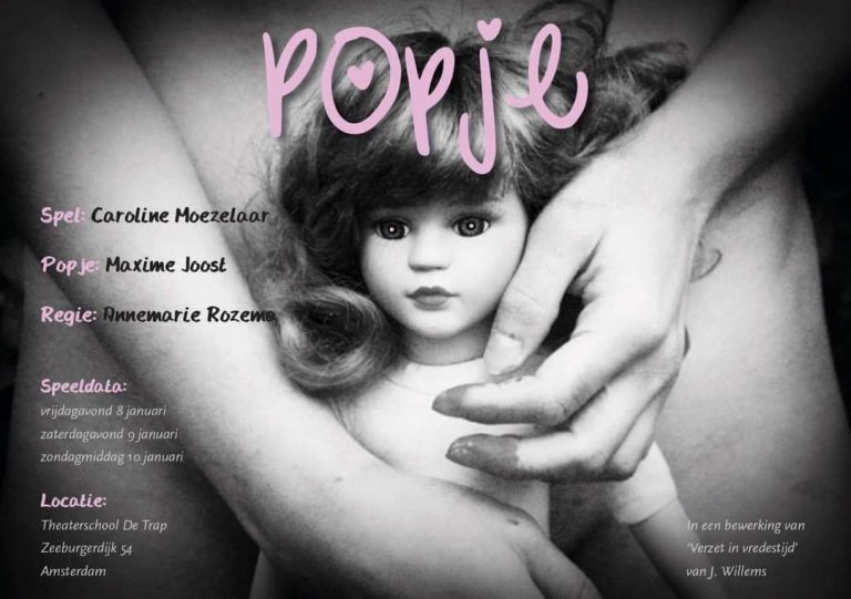 Popje, gebaseerd op teksten van Jibbe Willems bij Theaterschool De Trap, regie Annemarie Rozema, actrice solovoorstelling (2016)